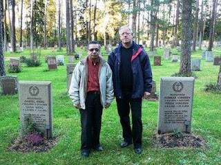 Lars Vingren entre os túmulos de Daniel e Sara Berg (à esquerda) e Gunnar e Frida Vingren (à direita)