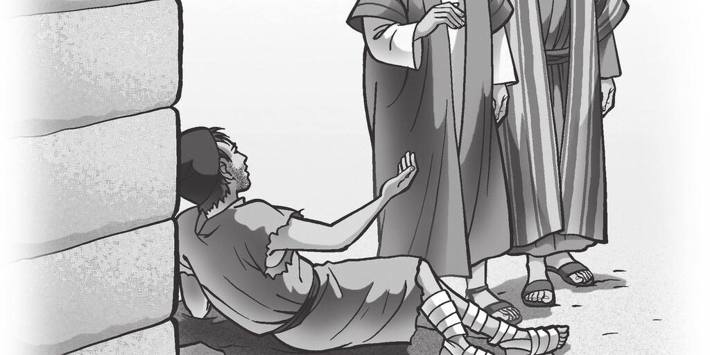 Pedro e João subiam ao Templo para a ‘oração’ da hora nona. Era levado um homem, coxo de nascença, o qual punham diariamente à porta do templo chamada Formosa, para pedir ‘esmola’ aos que entravam. Vendo ele a Pedro e João, que iam entrar no Templo, implorava que lhe dessem uma esmola. Pedro, fitando-o, juntamente com João, disse: ‘Olha’ para nós. Ele os olhava atentamente, esperando ‘receber’ alguma coisa. Pedro, porém, lhe disse: “não possuo nem prata nem ouro, mas o que tenho, isso te dou – em nome de Jesus Cristo, o Nazareno, anda!” E, tomando-o pela mão direita, o levantou; imediatamente, os seus pés e tornozelos se firmaram. De um salto se pôs em pé, passou a andar e entrou com eles no Templo, saltando e louvando a Deus. (Atos 3.1-8)