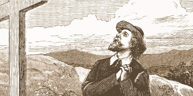 O Cristão não estava disposto a morrer, mas admitia que a vida era afligida por muitos males. Assim, ele olhava para Evangelista, enquanto apontava o dedo para um campo bem vasto, onde se encontrava uma porta estreita.
